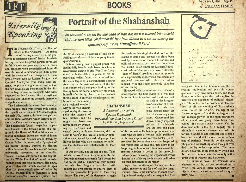 (007) Shahanshah by Ryszard Kapuscinski reviewed by Muzaffar Ali Syed in The Friday Times
