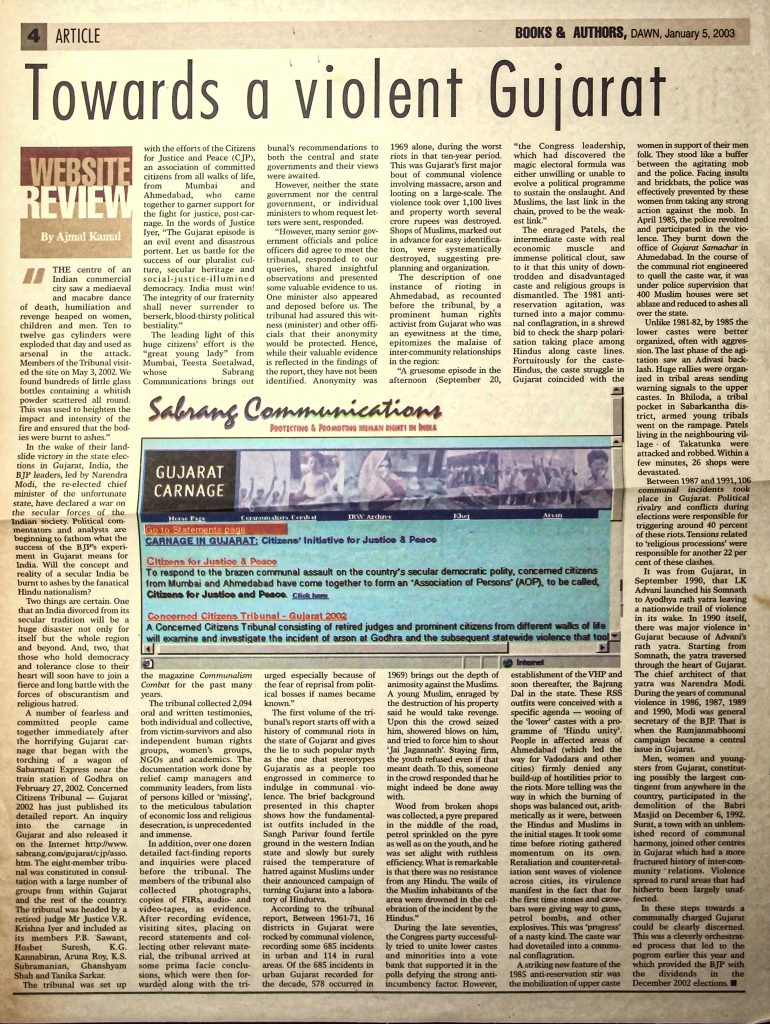 The centre of an ancient city saw a medieval style carnage. Scenes of death, humiliation and destruction were enacted on children and men. Ten to twelve gas cylinders were burst the day the Hindus had arrived in the attack Sabrang and its website hosted the site on May 5, 2002. We found that hundreds of kerosene bottles containing a whitish solution were found at the site. This was used to heighten the flames after setting on fire gas cylinders and kerosene bottles were burnt to ashes.” In the post Godhra landslide victory in the state elections in Gujarat, under the BJP leaders, led by Narendra Modi, five prominent citizens have come together and have declared a war on the communal fascist political Indian society. Political commentators and analysts are beginning to fathom what the victory of the BJP means, not just for Gujarat, but for India. Will the concept and weight of a secular India be burnt to ashes by the fanatical ‘Hindutva’ politics? Two things are certain. One that this is certainly not the last we have seen of the fire, or a huge disaster not only for India but for South Asia and beyond. And, two, that those who value secularism and tolerance close to their hearts will never surrender to these dark and threatening forces of obscurantism and religious hatred. A number of fearless and dedicated citizens came together immediately after the large-scale killings and carnage that began with the burning of a coach of Sabarmati Express in Godhra train station of Gujarat on February 27, 2002. A ‘Concerned Citizens Tribunal — Gujarat 2002’ has now published a detailed report. An inquiry into the carnage in Gujarat on the Internet http://www. online. com. The eight member tribunal was constituted in consultation with a large number of groups from within Gujarat and the rest of the country. The Tribunal was headed by Justice Krishna Iyer. Justice Krishna Iyer and included as its members P.B. Sawant, K.G. Kannabiran, Aruna Roy, Dr. Subramaniam, Ghanshyam Shah and Tanika Sarkar. The tribunal was set up with the efforts of the Citizens for Justice and Peace (CJP), who put together a list of 800 citizens from all walks of life, from academics to Ahmedabad, who came together to gather support for the CJP and for the ‘inquiry’. In the words of Justice Iyer, “We shall not sleep over an evil event and disastrous development resulting from the success of our pluralist culture. Secularism, basic feature of the Constitution and democracy India must win! We, the people of India shall never surrender to the dark, demonic forces of communalism.” “The healing light of this report” given form in the “great young lady” from Gujarat, Teesta Setalvad, whose Sabrang Communications brings out bunal’s recommendations to both the central and state governments. Copies of these were awaited. Whether either the state government or the central government, or individual concerned, to whom these letters were sent, responded. The report listed all the government officials and police officers who had, before this tribunal, requested to be heard or proved insightful were persons who gave ‘invaluable evidence’ to us. The list contains 2,094 witnesses and deposed before us. Unlike the non-government witness and other officials who gave supporting evidence, it would appear while their valuable evidence is ‘buried’ in the volume of the report, they have not been identified. 1969 alone, during the worst riots in that ten-year period. Then, in Gujarat, 1980, a bad bout of communal violence. In a single outbreak, nine lives were lost. In Ahmedabad, the violence took over 1,100 lives and property worth over 4 crore rupees was destroyed. Many of the instances reveal, in advance for easy identification of the minority, fully documented reports, preplanning and organisation. For the first time, for instance, in rioting in Ahmedabad, 23 incidents before the tribunal by a prominent activist from Gujarat. This was mentioned in the report, but was not part of the ‘evidence’. A gruesome episode in the afternoon September 26, 1969 alone, during the Congress leadership, which had discovered the ‘Gujarat formula’ of engineering either unwilling or willing riots between two broad programme of divide and rule, upper caste Muslims, the last link in the chain, even down to the lowest sub-caste link. This enraged Patels, the intermediate caste with real power. They launched a ‘save reservation’ drive adding to it that this unity of down trodden and intermediate caste and religious groups is responsible for the ‘pro-reservation agitation, was communal’. For the first time, the state machinery was seen to bid to check the sharp polarisation between the Savrila Hindus along caste lines. Unlike the riots in rural Hindu, the caste struggle in Gujarat coincided with the women in support of their men folk. They stood like a buffer between the attacking mob and the police. Hurling stones and brickbats, the police was also made ineffective. Young women from taking any strong action. During this time, in April 1985, the police revolted and subsequently, all the offices of CJP were burnt down. In Gujarat then, it was clear that the state police, in the communal riot engineered by Congress state government, under police supervision that ‘the state machinery’, went up ablaze and reduced to ashes all that was ‘just’. In the rural areas, the lower castes were better organised than in the urban areas. The last phase of the agitation, in Ahmedabad, was lush. Huge rallies were organised by ‘Dalits’ that sounded warning signals to the upper castes. On May Day, a ‘tribal rally’ was organised in the district, armed tribal groups went on rampage and plundering in the neighbouring villages. Properties were attacked and robbed. Within a few days, all riots were brought down. “Between 1987 and 1991, 106 communal incidents took place in Gujarat. Political actors and small, state-level elections