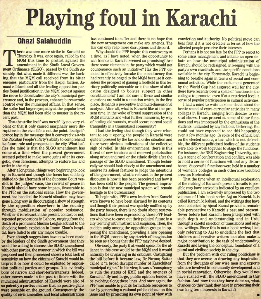 There was one more strike in Karachi on Thursday. It was, once again, called by the MQM, this time to protest against the amendment in the Sindh Local Government Ordinance (SLGO), passed by the Sindh Assembly. But what made it different at the beginning was the call from the MQM, from its bitter enemies, particularly from the Haqiqi faction, its mainstream rivals and the leading opposition parties found justification in the MQM protest against the move to decentralise the city’s municipal government and, in the process, enhance bureaucratic control over the municipal affairs. In that sense, the strike had larger sympathy at the popular level than the MQM had been able to muster in the recent past. That the strike itself was mercifully not very violent and it only caused marginally more disruptions in the civic life is not the point. Its significance lay in the message that it conveyed vis-a-vis the Pakistan People’s Party’s ability to comprehend its future role and prospects in the city. What baffled the mind is that the SLGO amendment has come at a time when the present government seemed poised to make some gains after its energetic, even ferocious, attempts to restore law and order in the city. After a long time, things were beginning to look up in Karachi and though the focus has certainly shifted to the aftermath of the Supreme Court verdict in the judges’ case, the revival of peace in Karachi should have some impact, favourable to the PPP, on the national scene. How the government has handled the Karachi situation may have gone a long way in discouraging a show of strength by the opposition in Lahore or, in the country, through mobilisation of popular resistance. Whether it is relevant in the present context or not, repeated provocations in Lahore, ranging from the death of a prominent PPP activist arrested in connection with explosions in Imran Khan’s hospital, have failed to stir any major trouble. Even though suggestions have now been made by the leaders of the Sindh government that they would be willing to discuss the SLGO amendment with other parties, the manner in which the bill was presented and then processed shows a total lack of sensitivity on how the citizens of Karachi would interpret it or how it could be exploited by opposition political parties and groups. It is, evidently, born of narrow and short-term interests. Indeed, other moves made in the past to tinker with the municipal administration of Karachi had, also, been of a partisan nature given that no lasting gains were possible on the ground. Consequently, the quality of civic amenities and local administration has continued to suffer and there is no hope that the new arrangement can make any amends. The law can only reap more disruptions and discord. Why should the PPP inspire this controversy at a time, as I have noted, when the opportunity to win friends in Karachi seemed so promising? Are there some elements in the party which would not countenance such an initiative? Has the PPP decided to effectively placate the constituency that had recently belonged to the MQM because it considers the prospects of gaining a foothold in this territory politically valuable to its ‘Shaik of show’ of dedication designed to bolster support in other constituencies? I am not sure if these and similar questions are valid in a situation which, in the first place, demands a practical and multi-dimensional analysis. After all, what is Karachi like at the present time, in the wake of harsh suppression of the MQM militancy and what further measures, by way of healing old wounds, would secure normal social tranquillity in a traumatised community? To say it mildly, that though there were reluctant to ‘say it openly,’ the people in Karachi were quite impressed by the law and order situation and there were obvious indications of the collapse of the reign of terror. In this environment, there is this threat of new tensions and renewed polarisation along urban and rural or the ethnic divide after the passage of the SLGO amendment. Though nominally we should look closely at the amendment and analyse its salient features to judge the intentions of the government, what is relevant in the present discourse is how it has been perceived and how it has been sold to the people. The general impression is that the new municipal system will remain hostile to the bureaucracy. To begin with, PPP’s own leaders from Karachi were known to have been alarmed by its contents and though their protest was quickly hushed up by the party bosses, there is no doubt about reservations that have been expressed by those PPP leaders who have to carve out their political future in a city teeming with mistrust and suspicions. Then, the sudden unity among the opposition groups in opposing the amendment, providing a new opening to the MQM, counters by any stretch of imagination as been as a boon that the PPP may have desired. Obviously, the party that would speak for and ultimately be the case would be the MQM as it would naturally be supporting in its criticism. Castigating the bill before it became law, Dr Farooq Sattar called it ‘a broad daylight murder of Karachiites’ municipal rights’. In his view, it was a ‘conspiracy to ruin the status of KMC and the citizens of Karachi’. By and large, public opinion tended to be evolving along these lines. And once again, the PPP was unable to nail its formidable resources to use by generating a rational public debate on this issue and by projecting its own point of view with conviction and authority. No political move can bear fruit if it is not credible in terms of how the affected people perceive their interests. Perhaps it is not too late for the PPP to resort to some crisis management and initiate an open debate on how the municipal administration of Karachi should be redesigned, in keeping with the party’s own manifesto and the specific conditions available in the city. Fortunately, Karachi is b