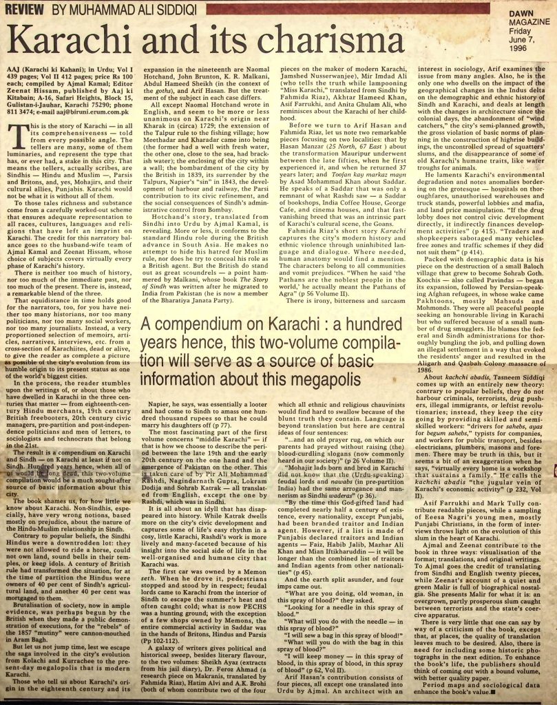 The result is a compendium on Karachi and Sindh on Karachi at least if not on Sindh. Hundred years hence, when all of of would long dead, this two-volume compilation would be be a much sought-after source of basic information about this city.