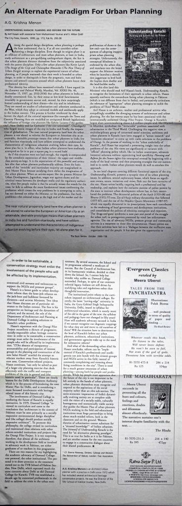 theories of urbanization cannot substitute for a “situated knowledge” of Indian urbanism. The leitmotif of Understanding Karachi is the need for “an alternative planning paradigm”. This is as true for India as it is for Pakistan. and yet another reason for the two countries to engage in a constructive dialogue abour their shared predicament.