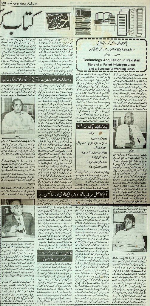 کوئی ایسا شخص جو کتاب سے دوستی رکھتا ہو، وہ کبھی تنہا نہیں رہ سکتا۔ کتاب سے اس کی سرگوشی کا ایک مفہوم یہ بھی ہے کہ وہ اسے کسی ان دیکھے جہان کی سیر کرانے والی ہے۔ علم و دانش کے موتی رولنے والی کتاب ہر کسی کے لئے ایک بہترین ساتھی کا درجہ رکھتی ہے۔ دوستی اور محبت کے یہ رشتے اس وقت مزید گہرے ہو جاتے ہیں، جب کتاب کے الفاظ قاری کے دل و دماغ پر گہرے نقوش چھوڑنے لگتے ہیں۔ یہ نقوش اتنے گہرے ہوتے ہیں کہ انسان کی سوچ اور فکر کا دھارا ہی بدل دیتے ہیں۔ کتابوں سے دوستی کا یہ رشتہ صدیوں پر محیط ہے اور جب تک یہ دنیا باقی ہے یہ رشتہ قائم و دائم رہے گا۔ کتاب کا ہر ورق ایک نئی دنیا ہے، نئی شعور کی راہیں، نئی منزلوں کا پتہ، نئی سوچ اور فکر کے دریچے، غرض یہ کہ کتاب میں وہ سب کچھ ہے جو انسان کو چاہیے، یہی وجہ ہے کہ کتاب سے دوستی رکھنے والے کبھی تنہا نہیں رہتے، وہ ہر لمحہ کتاب کے ساتھ رہتے ہیں اور کتاب ان کے ساتھ۔ کتاب سے دوستی کا یہ رشتہ اس وقت اور بھی مضبوط ہو جاتا ہے جب کتاب انسان کو کچھ نہ کچھ دے کے جائے۔ زمیندارانہ نظام اور ذات پات کی تفریق، برقی ابلاغ کی راہ میں رکاوٹ ہے زیر نظر کتاب ”ماس کمیونیکیشن“ ایک ایسی کتاب ہے جس کی تالیف جاوید جبار نے کی ہے۔ اس کتاب میں انہوں نے پاکستان میں ماس کمیونیکیشن کے مختلف پہلوؤں پر روشنی ڈالی ہے۔ کتاب کے آغاز میں ملک کے ممتاز دانشوروں، صحافیوں اور ادیبوں نے جاوید جبار سے تفصیلی گفتگو کی ہے، جس سے قارئین کو ان کے نقطہ نظر کو سمجھنے کا موقع ملتا ہے۔ اس کتاب میں ڈھائی سو سے زائد تصاویر بھی اس کتاب کی زینت ہیں۔ اس کتاب میں مصنف نے اس بات کا بھی جائزہ لیا ہے کہ کس طرح بعض قوتیں میڈیا پر مکمل کنٹرول حاصل کرنا چاہتی ہیں اور کس طرح وہ اپنے مقاصد کے لئے میڈیا کو استعمال کرتی ہیں۔ مصنف نے اس کتاب میں اس بات کا بھی جائزہ لیا ہے کہ کس طرح زمیندارانہ نظام اور ذات پات کی تفریق برقی ابلاغ کی راہ میں رکاوٹ ہے۔ اس کتاب میں مصنف نے میڈیا کی آزادی اور اس کے مستقبل پر بھی روشنی ڈالی ہے۔ مصنف نے اس کتاب میں یہ بھی بتایا ہے کہ کس طرح سرکاری اور نجی سطح پر میڈیا کو کنٹرول کیا جاتا ہے۔ جاوید جبار نے اس کتاب میں میڈیا کی آزادی کے لئے چند تجاویز بھی پیش کی ہیں۔ یہ کتاب دراصل ان مضامین اور تقاریر کا مجموعہ ہے جو مصنف نے مختلف مواقع پر پیش کیں۔ میڈیا کے بارے میں لکھی گئی یہ ایک بہترین کتاب ہے۔ اس کتاب کی قیمت درج نہیں ہے۔ فلم، ریڈیو، ٹیلی ویژن، اخبار اور ماہنامے اس کتاب میں مصنف نے پاکستان میں میڈیا کے مختلف شعبوں، مثلاً فلم، ریڈیو، ٹیلی ویژن، اخبار اور ماہناموں پر تفصیلی روشنی ڈالی ہے۔ ڈاکٹر شیر محمد کا کہنا ہے کہ اس کتاب میں شامل تمام مضامین اور تقاریر میڈیا کے طلبا کے لئے بہت مفید ہیں۔ جاوید جبار نے اس کتاب میں میڈیا کے مختلف پہلوؤں پر جس طرح روشنی ڈالی ہے وہ قابل تعریف ہے۔ ڈاکٹر شیر محمد نے کہا کہ یہ کتاب میڈیا کے طلبا کے لئے ایک بہترین تحفہ ہے۔ قمر نے کہا کہ اس کتاب میں شامل تصاویر بھی بہت معلوماتی ہیں۔ اس کتاب میں شامل ہیں، اس کتاب کا اسلوب بہت عمدہ اور دلچسپ ہے۔ اس کتاب کی قیمت درج نہیں ہے۔ پاکستان میں سائنس اور ٹیکنالوجی مراعات یافتہ طبقہ علم کو نچلے طبقے تک منتقل ھونے کی کہانی یہ کتاب ایک ایسے پاکستانی سائنسدان کی کہانی ہے جس نے اپنی زندگی کے بہترین شب و روز سائنس اور ٹیکنالوجی کے فروغ کے لئے وقف کر دیئے۔ اس کتاب میں انہوں نے اپنی زندگی کے تجربات اور مشاہدات کو قلمبند کیا ہے، جس سے قارئین کو بہت کچھ سیکھنے کو ملتا ہے۔ کلام کیا۔ ڈاکٹر عطا الرحمن کو اس بات کا شدید احساس ہے کہ ہمارے ملک میں سائنس اور ٹیکنالوجی کی تعلیم کو وہ اہمیت نہیں دی جا رہی ہے جو اسے دی جانی چاہیے۔ انہوں نے اس کتاب میں اس بات کا بھی ذکر کیا ہے کہ کس طرح انہوں نے اپنی ذاتی کوششوں سے کراچی یونیورسٹی کیمپس میں ان کا قیام عمل میں لایا۔ اس کتاب میں انہوں نے سائنس اور ٹیکنالوجی کے فروغ کے لئے چند تجاویز بھی پیش کی ہیں۔ اس کتاب کو پانچ ابواب میں تقسیم ک