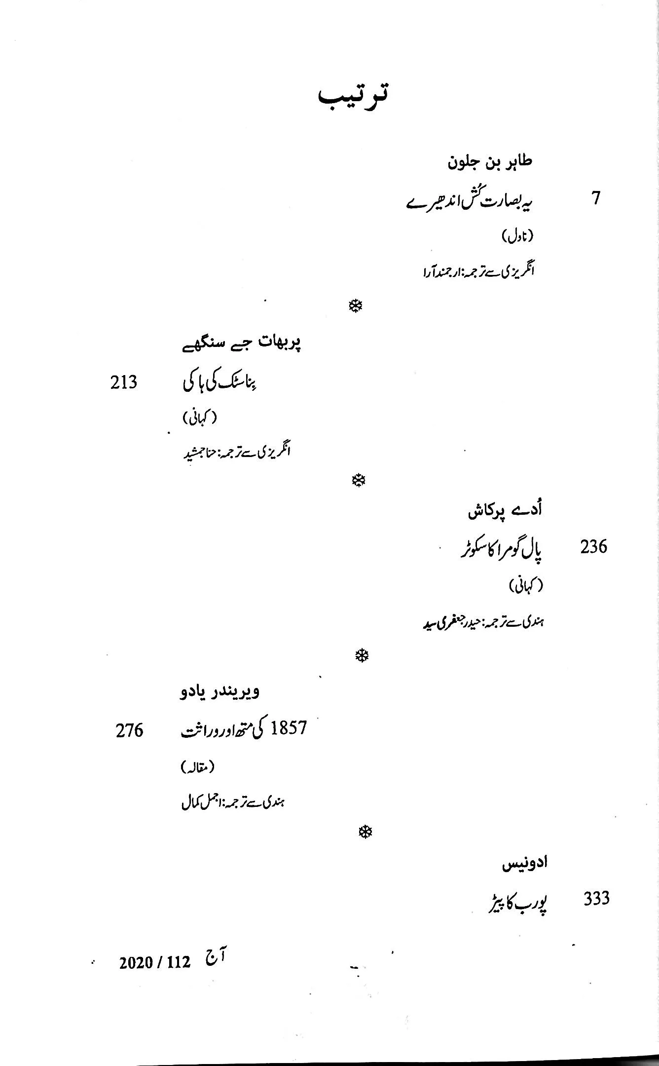یہ بصارت کُش اندھیرے (ناول) طاہر بن جلون ترجمہ: ارجمند آرا